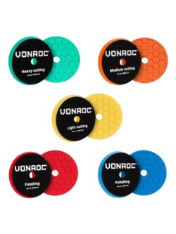 Complete set polijstpads voor VONROC excentrische polijstmachine. 5 pads voor grof tot finish werk. Geschikt voor Ø125 mm klittenband.