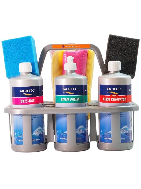 In dit pakket ontvangt u naast de Orbi Excentrische Polijstmachine een combinatie van de Yachtec Gloss Renovator Medium, de Reflex Polish en de UV15 Wax met de bijbehorende applicatiesponzen en uit poetsdoeken.